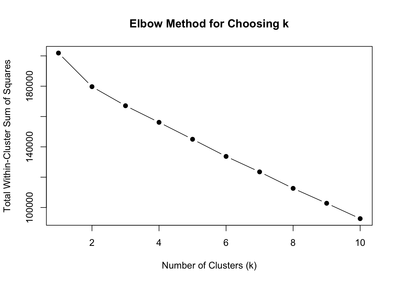 <- kmeans(scaled_data, centers = k, nstart = 25)