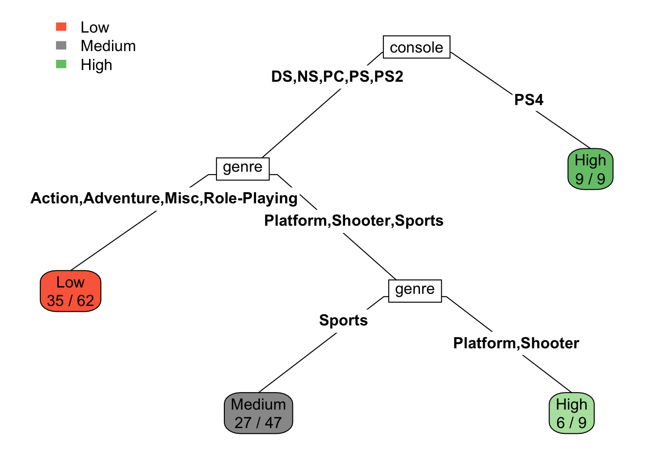 Developed a classification model to predict video game sales performance using a real-world video game dataset. Preprocessed the data through binning, factor conversion, and top-category filtering. Built, visualized, and pruned decision trees using cross-validation, and evaluated model performance using confusion matrices.