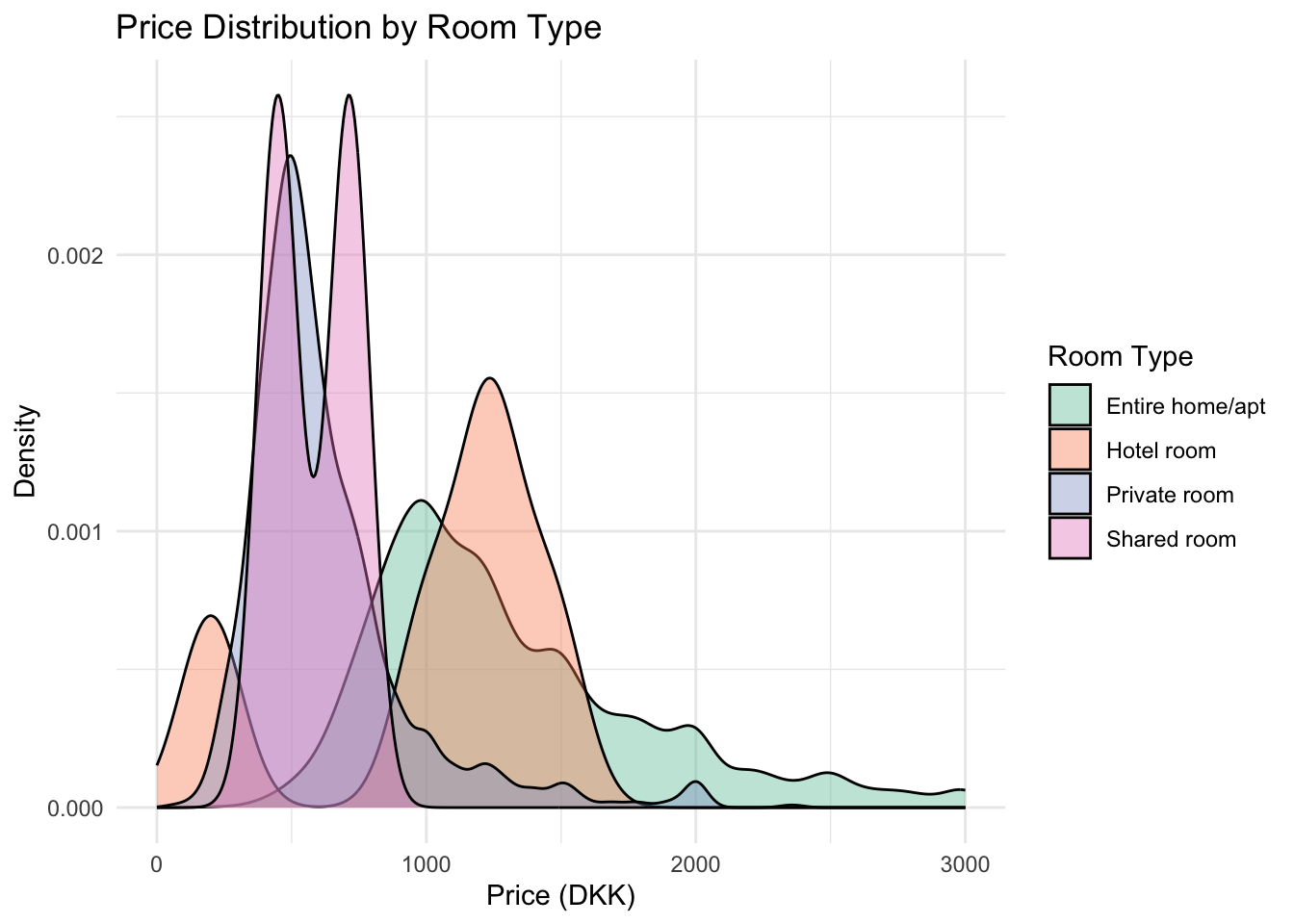 Some of the outcomes surprised us, while others were disappointing. The MLR, classification tree, regression, and naive bayes models reminded us that not every outcome is predictable in the real world, especially when human behavior is involved. This project proves that using more complicated methods does not necessarily lead to better predictions, and that in the real world any increase in accuracy, no matter how seemingly small, can be incredibly valuable. Real world data can also be shocking and questionable, listings priced over 60,000 DKK per night or minimum stays of over 200 nights could either represent exceptional cases or possible errors. What was ultimately most interesting about our work was seeing how different visualizations and modeling approaches revealed different parts of the same story. Rental markets are volatile, but certain themes consistently emerged across our analysis, like location and size importance to guests. This project reinforced the importance of patience and critical thinking when interpreting data. We must often look at the bigger picture and use domain knowledge to help understand the complexities of the real world.